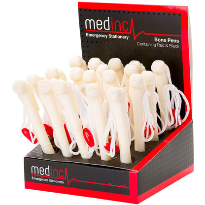 The femur is the large bone in your thigh. It is the longest and strongest bone in the human body. The head of the Femur articulates with the pelvic bone forming the hip joint. But for us it is just a really cool pen. The pen writes in black ink as required by all UK medical professionals. (and many more around the world). It comes with a useful neck strap. The neck strap helps to keep your pen accessible and stop people running away with it. You may think it is hard to keep a normal pen, you watch how many people try to steal your bone pen! However if you find yourself in a hostile environment and someone tries to steal the pen from you… Fear not because the neck strap of the bone pen will break and will stop you from being hurt.