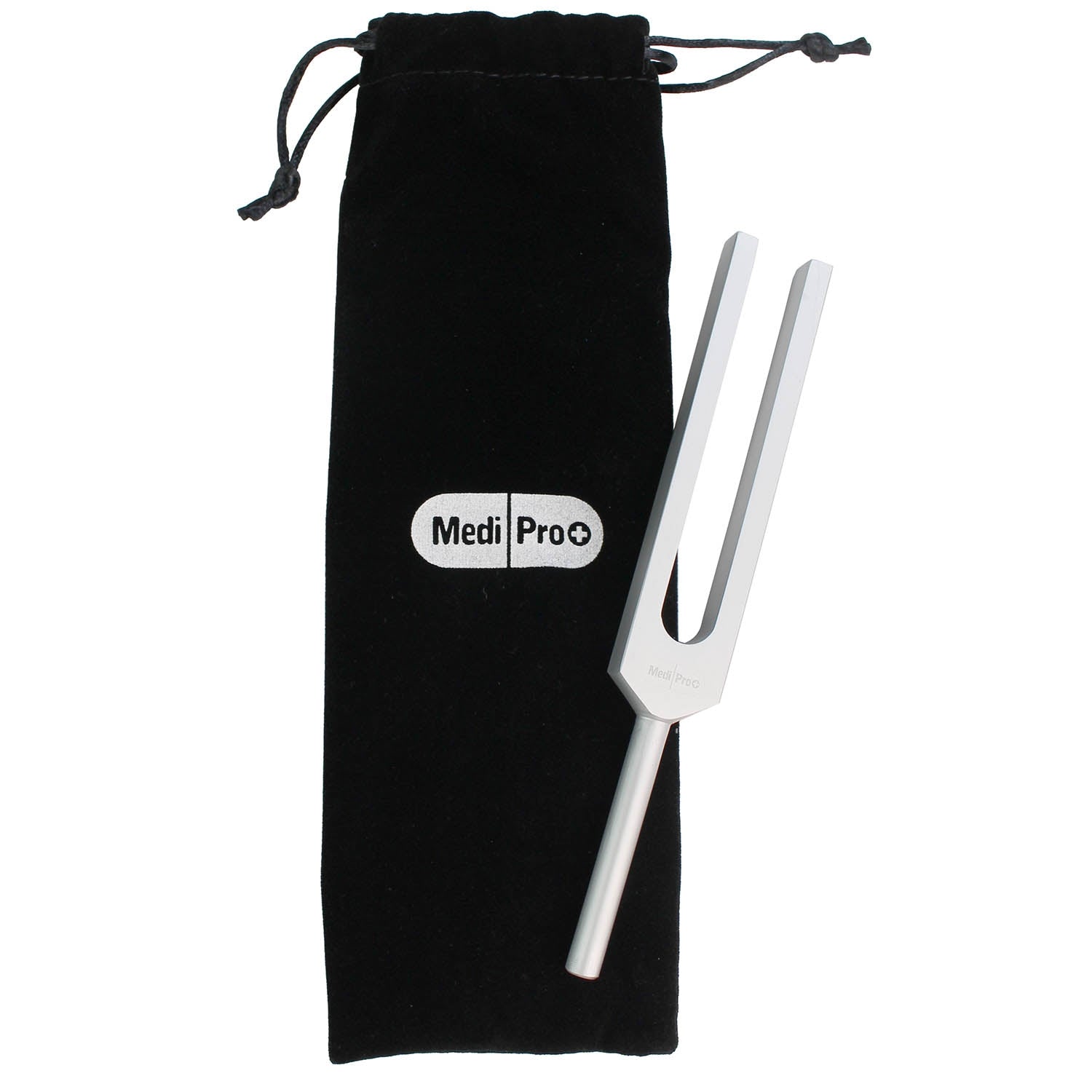 To keep the tuning fork accurate please do not tap with/on metal and after use clean with a soft cloth. Put the fork back inside of the MediPro bag and store in a dry place to prevent corrosion.