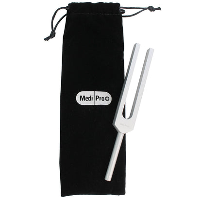 Introducing the MediPro Tuning Fork - 512Hz, your ideal tool for the Weber and Rinne tests! Made from a non-magnetic, corrosion-resistant aluminium alloy, it's both lightweight and durable. The long resonance ensures accurate bone conduction tests with a persistent ringing frequency. Complete with a MediPro bag for convenient storage. Please handle with care, avoiding tapping on metal surfaces and clean after use to maintain accuracy. For heavy consultations and sound healing therapies, you may also explore our collection of other clinical-grade tuning forks, including the 128 Hz, 528 Hz, and 512 Hz variants, designed for specific hearing assessments and wellness practices. Unlock the power of sound today!
