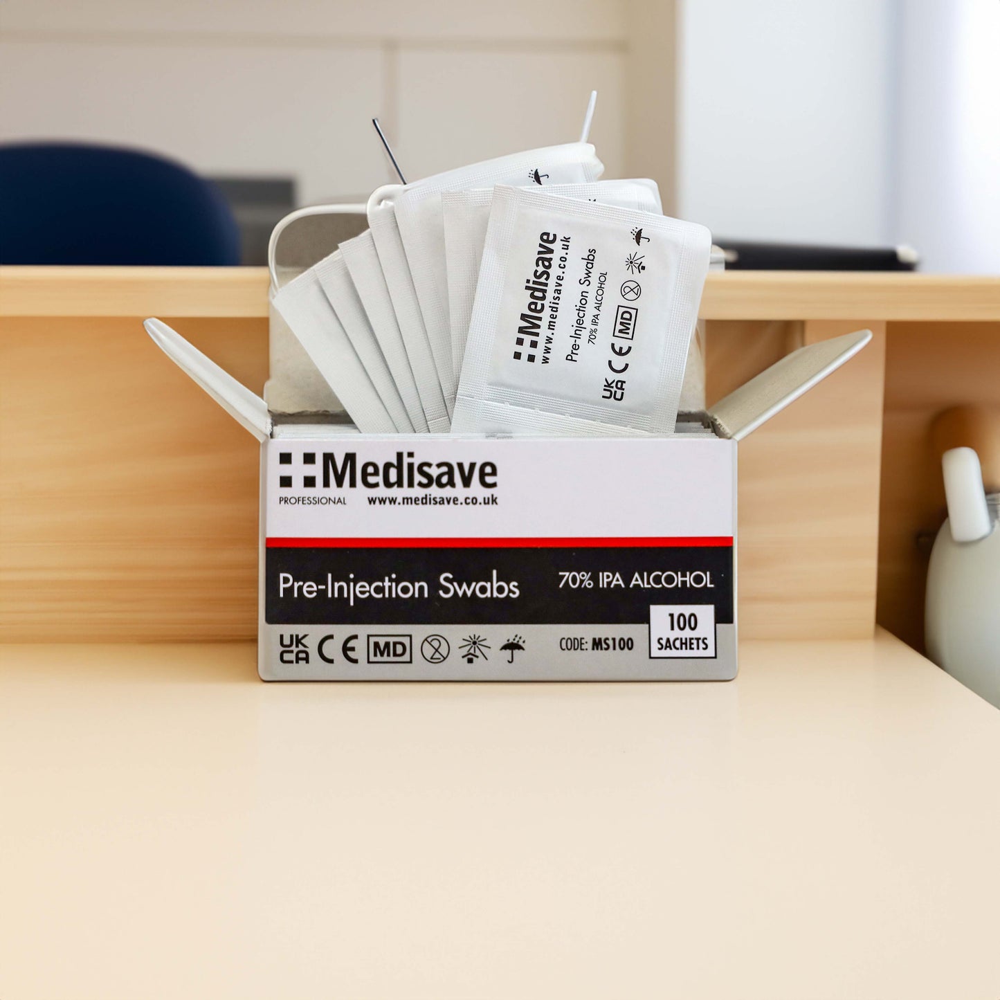 Box of 100 Medisave Professional 70% IPA Alcohol Pre-Injection Swabs