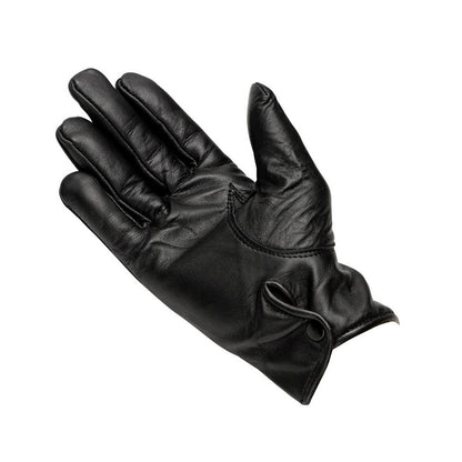 Men's leather gloves with cotton fleece lining and stud fastening cuffs.