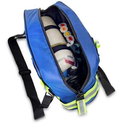 Designed to hold oxygen bottles up to 3 liters with flow meter, it is a multifunctional bag that allows the user to carry it as a backpack or shoulder bag. Likewise, its ergonomic design allows storage both horizontally and vertically. Its small size makes it the perfect bag for emergency and rescue operations.
