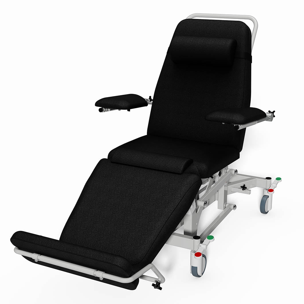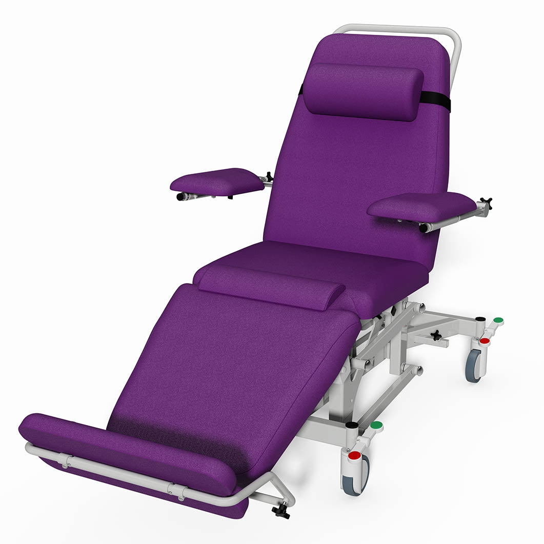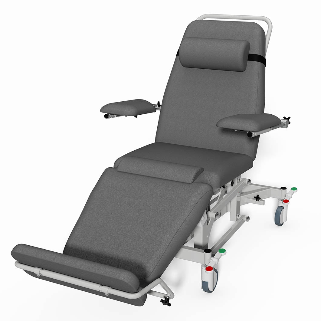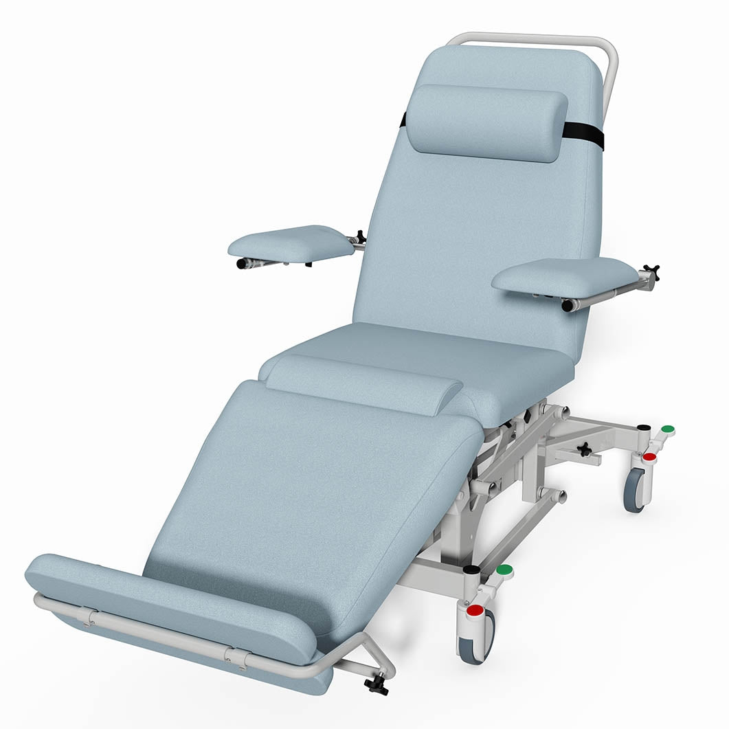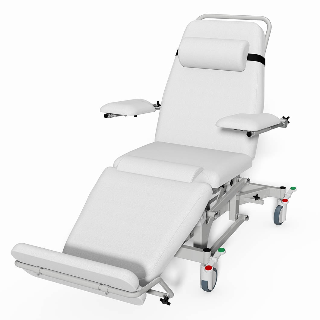 Developed for busy renal units, this chair is fully motorised and offers proven comfort, support and practicality. With a motorised Trendelenburg tilt, foot, leg and backrest, the chair is ideal for handling high risk patients and is suitable for dialysis, periton dialysis, plasmapheresis diagnosis, oncology and chemotherapy.