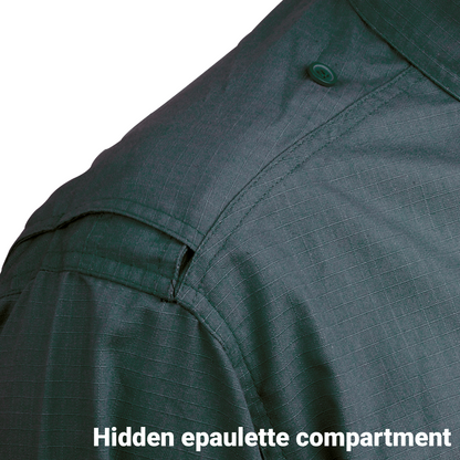 The Niton RipStop Shirts also features an "Eclipse Epaulette" function which allows rank epaulettes to be hidden within the shirt, for example; if off duty or in any sensitive situations. Simply unbutton the epaulette button fastener and thread under into the hidden compartment.