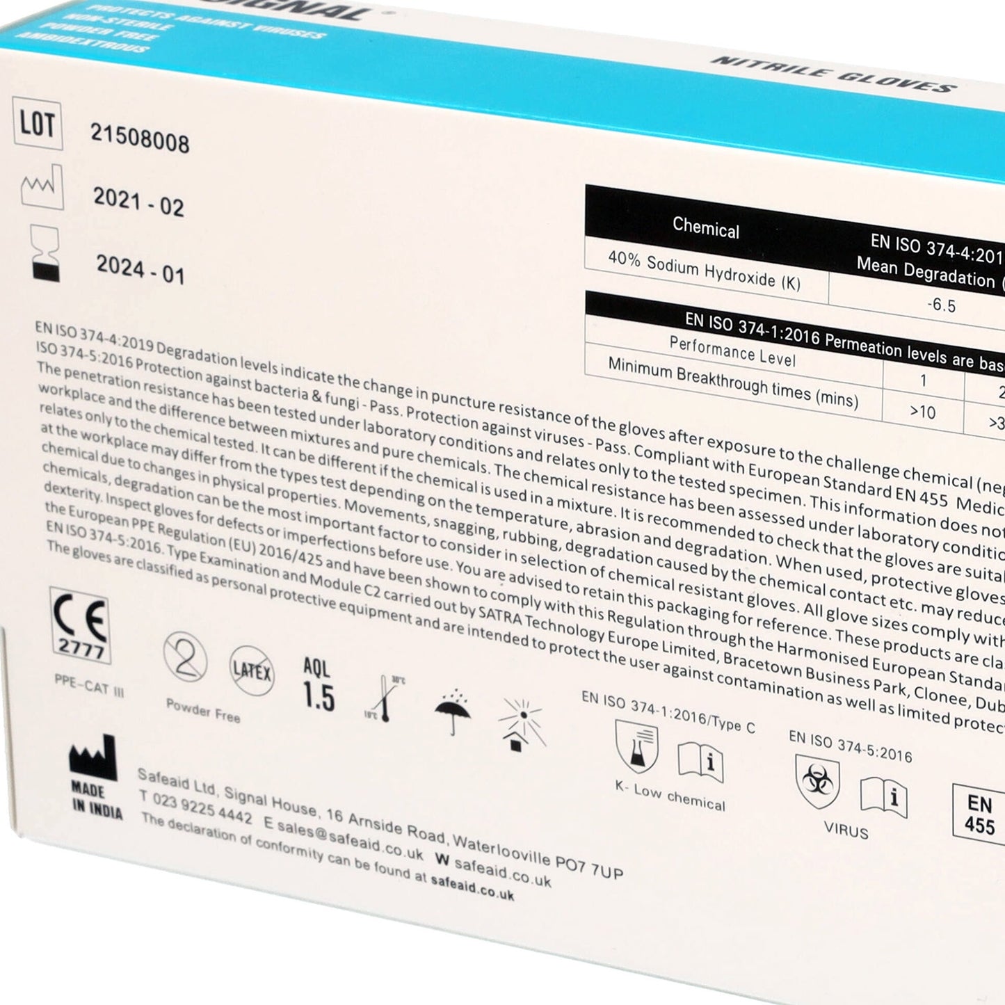 - EN ISO 374-1:2016/Type C, EN ISO 374-5:2016, EN 455.