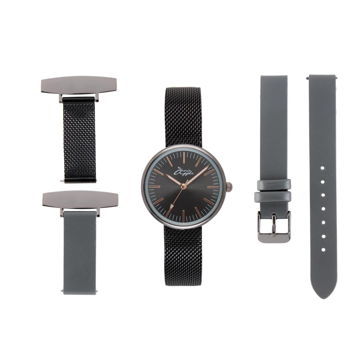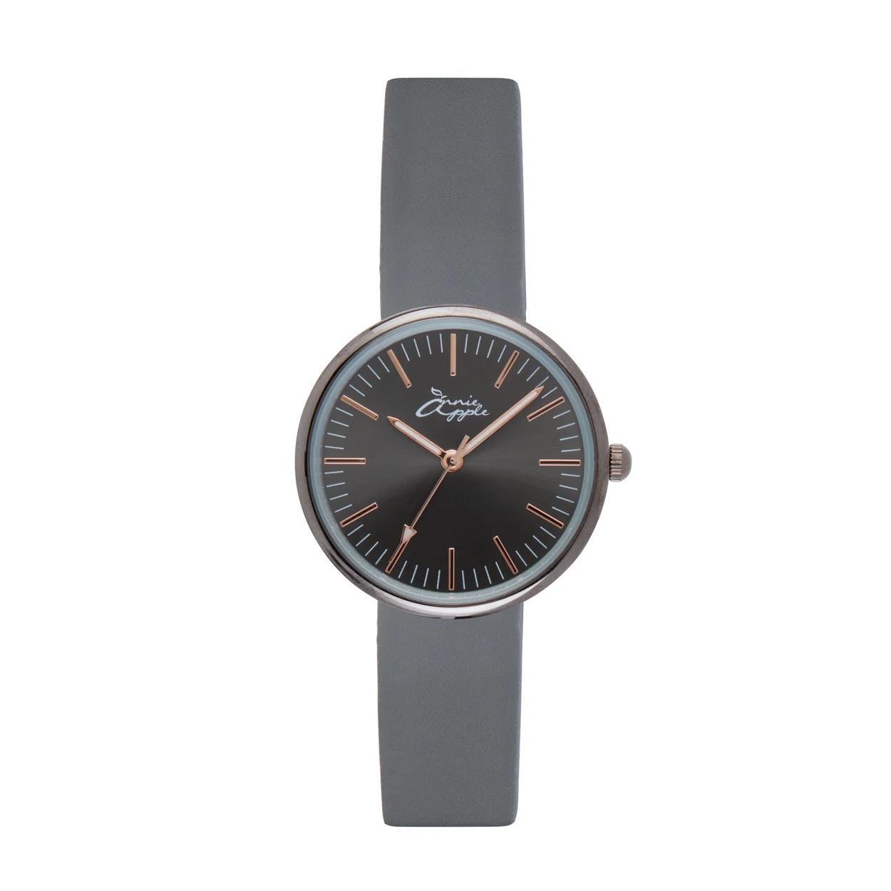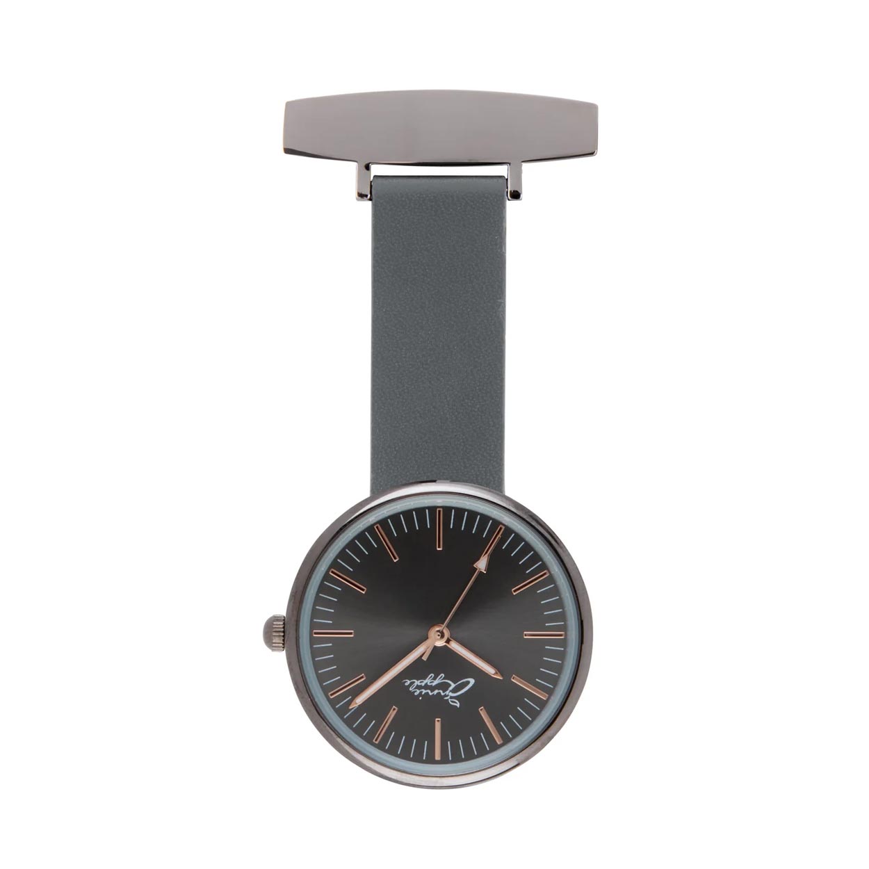 Annie Apple Nurses Fob Watch - Venus - Gunmetal Mesh - Grey Leather - 35mm