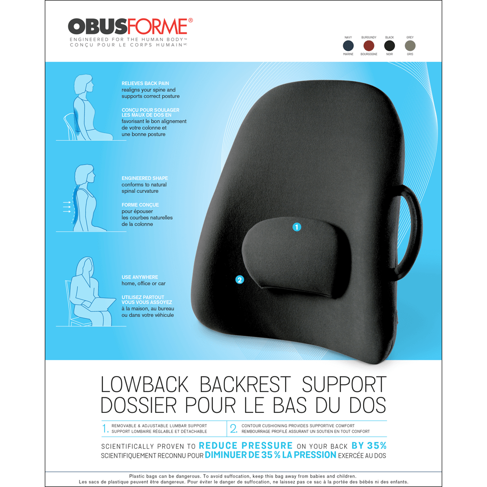 - Includes a patented lumbar pad that provides additional support for the lower back by filling in the lumbar curve