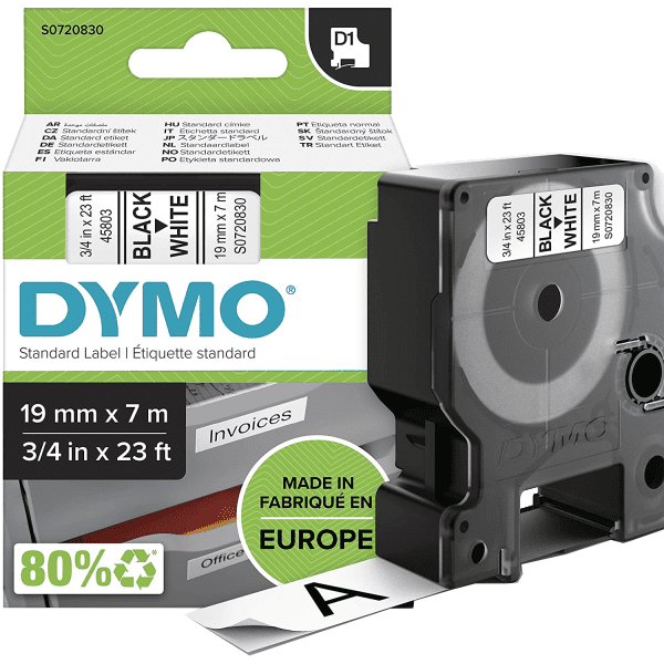 OEM Dymo 45803 - D1 Label Tape Black on White - 19mm x 7m