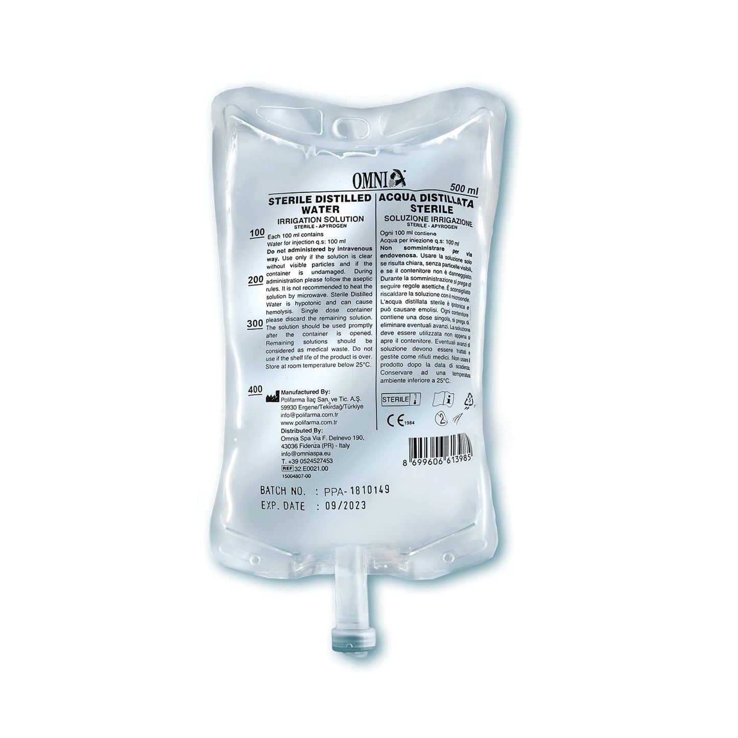 0.9% Saline Solution from Omnia is designed for cooling rotating surgical instruments during implant surgery or oscillating instruments during piezoelectric surgery.