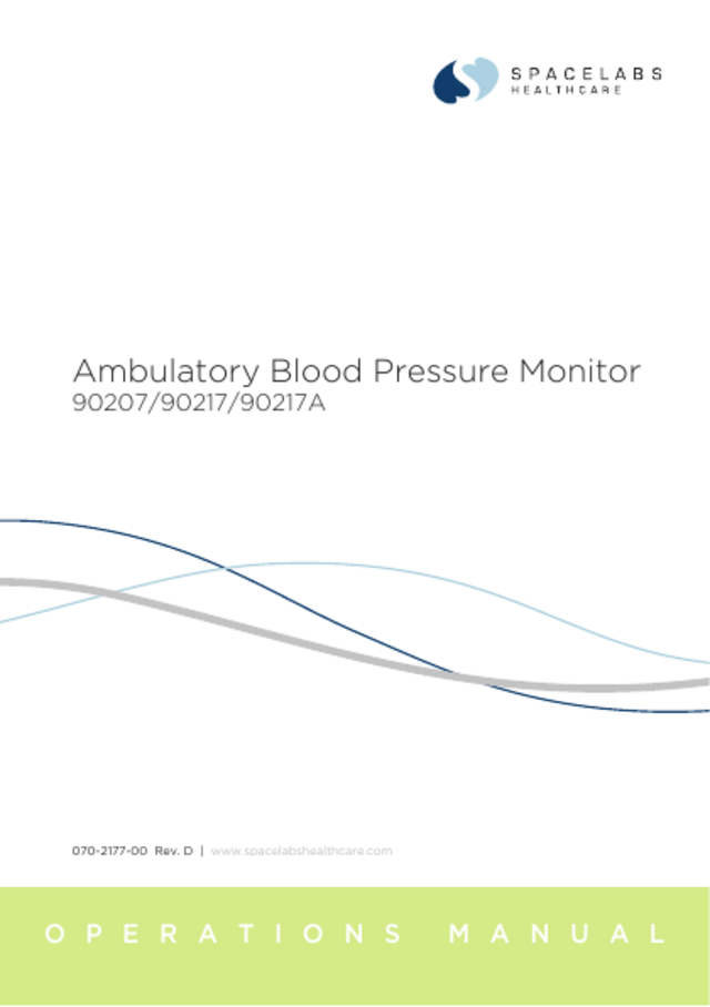 Spacelabs Healthcare - 070-2177-00 - ABP Monitor 90207, 90217 and 90217A Operations Manual