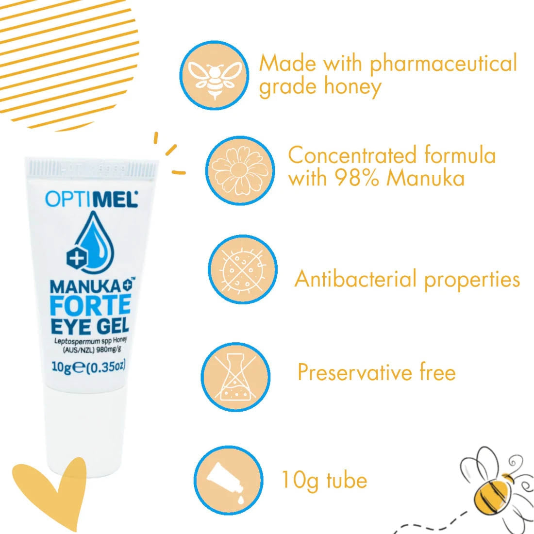 Optimel eye gel is one of the most innovative dry eye products in the market today and is well-known as an effective treatment for dry eyes. Made with pharmaceutical-grade honey, Optimel uses honey from bees of the Leptospermum species. This gel utilises the standardised and natural antibacterial property of honey to alleviate dry eye symptoms.