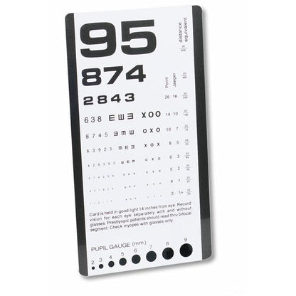 Plastic Pocket Eye Chart with Pupil Gauge. Dim: 3 1/2 ” x 6 5/8 ”.