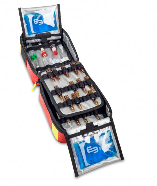 - It can hold up to 128 ampoules of different sizes, adrenaline, cold gels and injections.