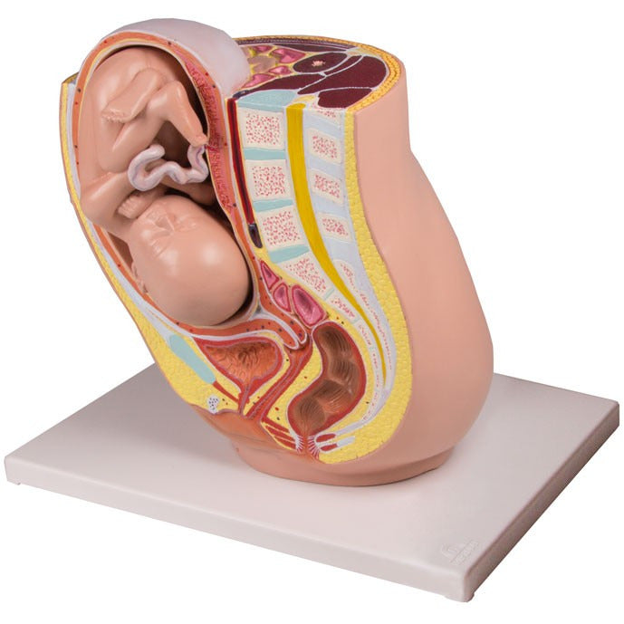 - This life size model depicts the female human pelvis in median section with a foetus in the 32nd week of pregnancy.
