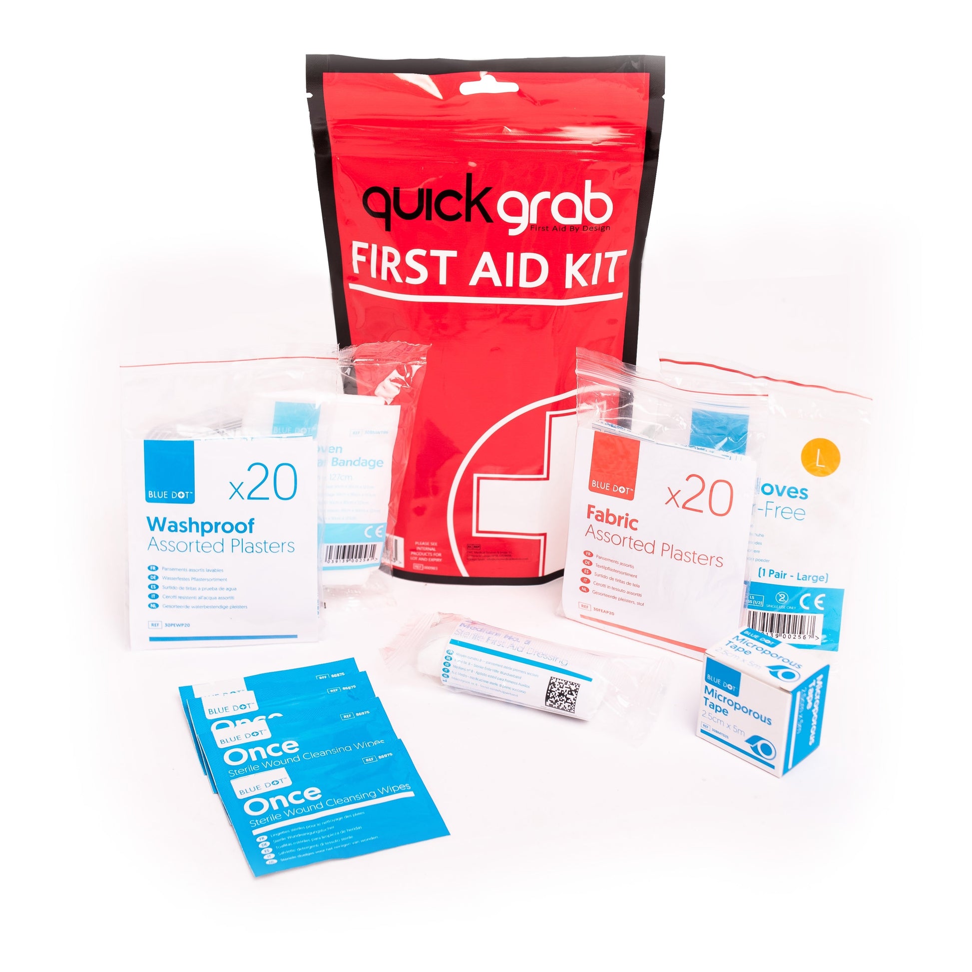 Quick Grab Medium First Aid Kit has been specifically designed in a grip sealed water resistant foil pack. Ideal for outdoor activities and first aiders. Complete with handy euro hook for storage.