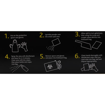 For the safe handling, containment and disposal of infectious micro-organisms contained in blood, vomit, urine, mucus, faeces and semen. Meets the current Health and Safety requirements