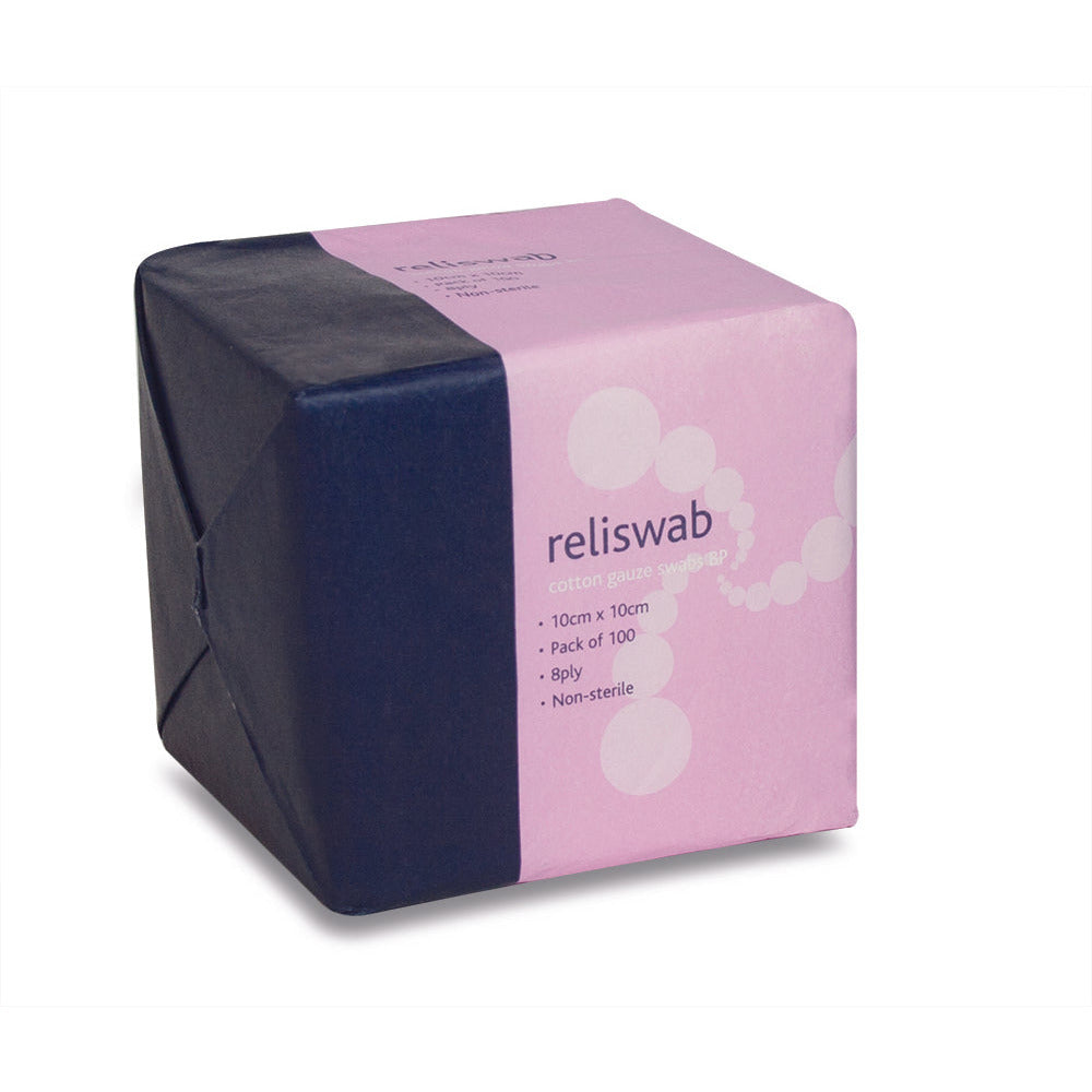 Reliswab - BP Non-Sterile 8ply 10cm - x 10cm Pack of 100