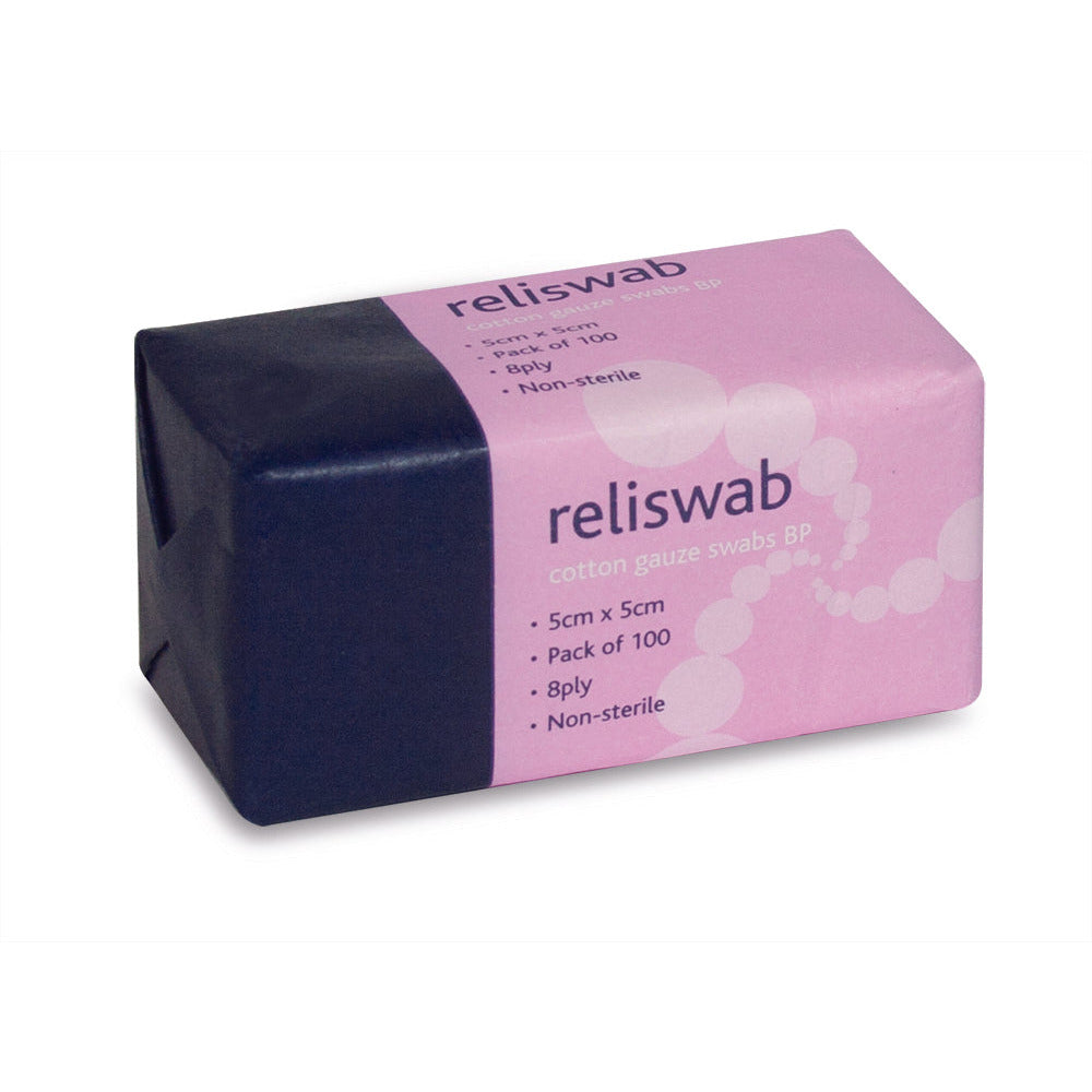 Reliswab - BP Non-Sterile 8ply 5cm - x 5cm Pack of 100