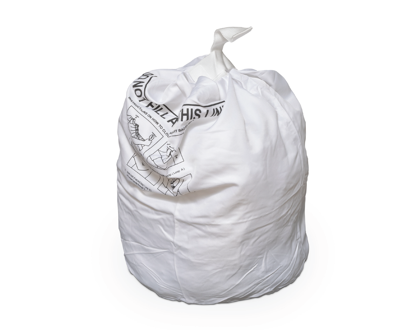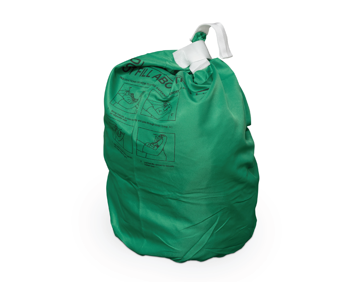 Safeknot is a soiled linen collection bag that utilises a simple and durable web fastening. Safeknot bags feature a maximum load line inscription to prevent overloading and improve manual handling procedures. Safeknot bags hav an elasticated opening, ensuring that they will fit the majority of soiled linen collection carts.