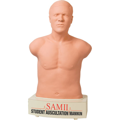SAM II, the Student Auscultation Manikin is a new innovation in teaching and learning heart, lung, and bowel sounds. Containing one of the largest sound libraries available, SAM II is a portable and easy to use manikin. While SAM II is used in many simulation centers, it is also easily moved into a classroom or auditorium for group instruction.