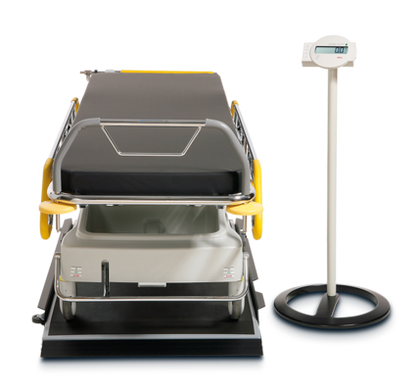The especially large platform of the seca 657 makes it possible to weigh patients on all commonly used stretchers. Patients can also be weighed while sitting in wheelchairs or on chairs. A unique characteristic of the seca 657 is the new memory function. This practical feature helps to lighten the workload especially in the emergency unit: first the total weight of the patient and stretcher or wheelchair is determined. The stretcher or wheelchair is then weighed separately and the net weight of the patient appears automatically on the display. A cable remote display with easy-to-read LCD figures is included in delivery. This display is operated intuitively and is equipped with many additional functions. With the pre-TARE function, the extra weight of a stretcher or wheelchair can be deducted directly from the total weight during the weighing process. With the BMI function, the nutritional condition of the patient can be determined. With the practical castors and integrated handles, the seca 657 is also transportable and for use in various locations.