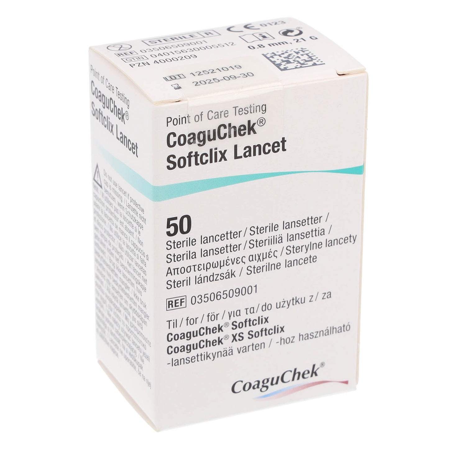 Sterile CoaguChek Softclix lancets that can be used with both the CoaguChek Softclix and the CoaguChek XS Softclix lancing device.