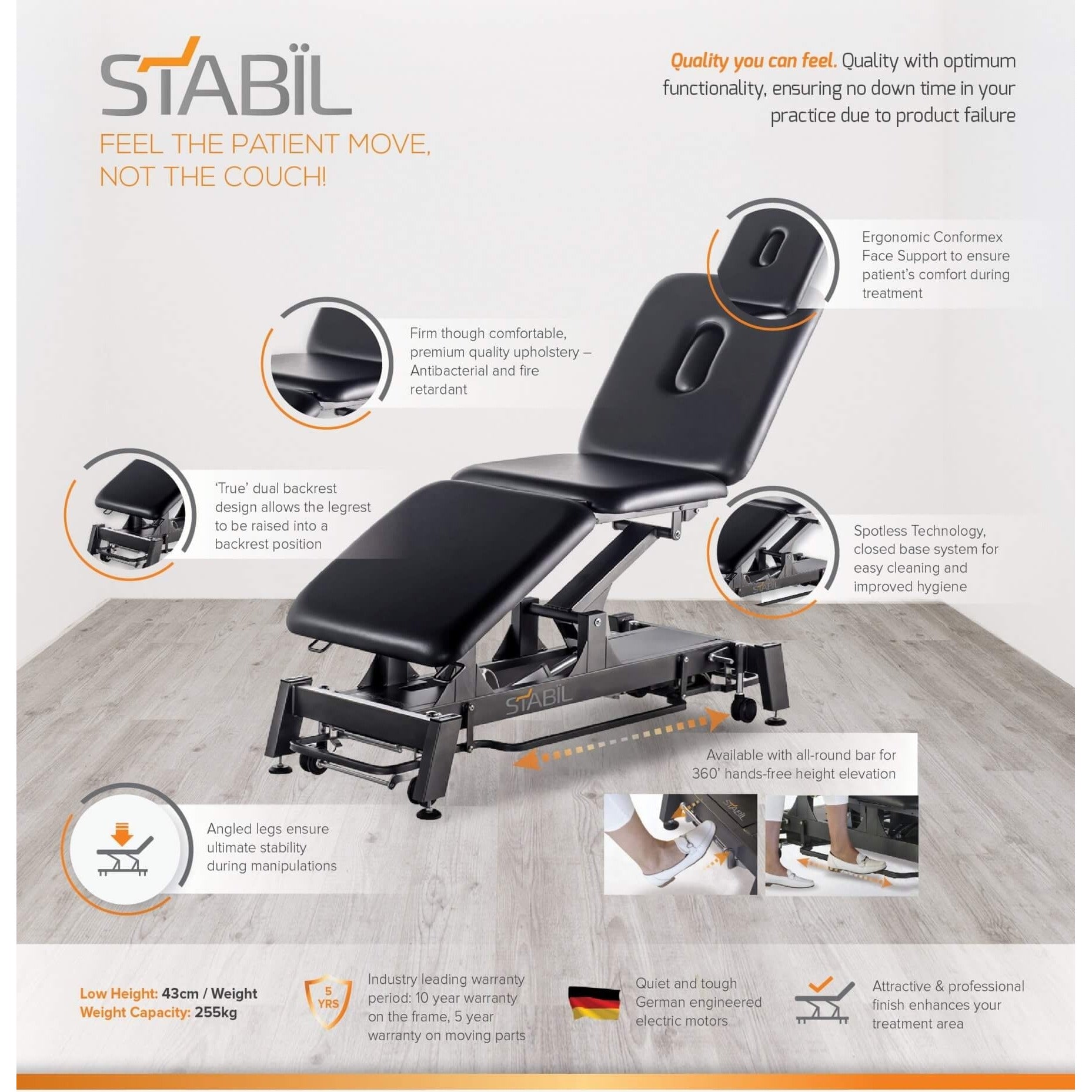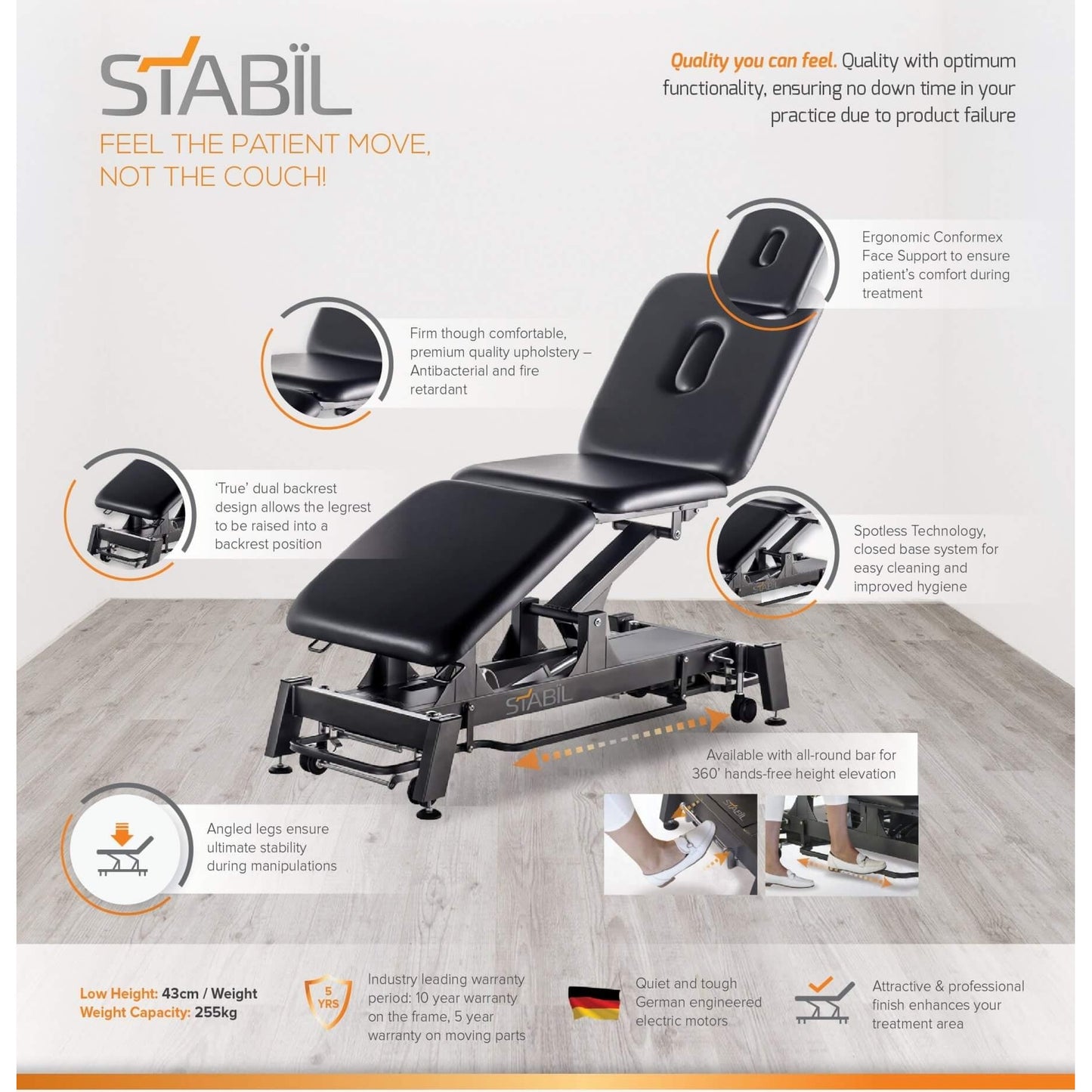 STABIL 3-Section Treatment Table / Black Frame / Black Upholstery - 360 Degree Operation