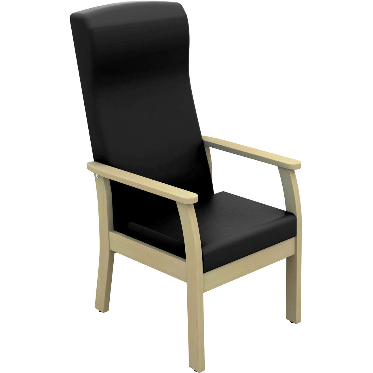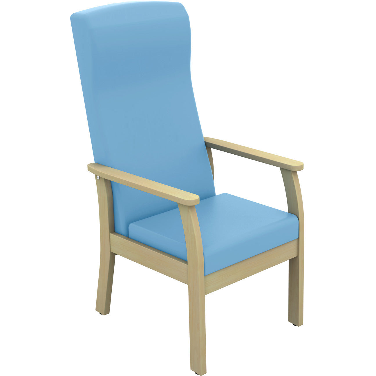 Deluxe Solid Beech frame upholstered seating range with deep foam padded seat and back for optimum comfort. Available in 3 upholstered fabrics including anti-bacterial vinyl in 15 colours. Shown in navy vinyl.