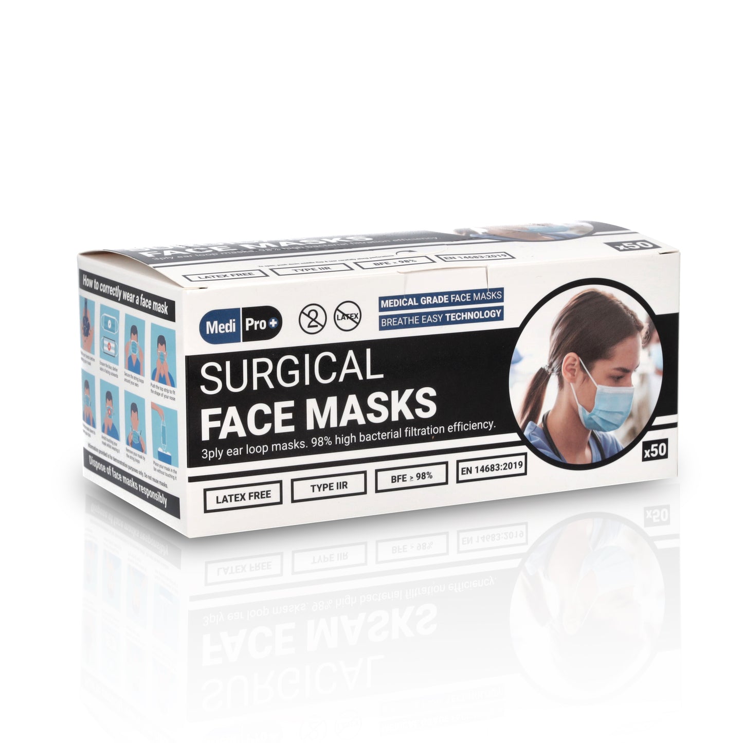 - The MediPro Surgical Face Masks are bagged within a plastic wrapper for hygiene purposes.