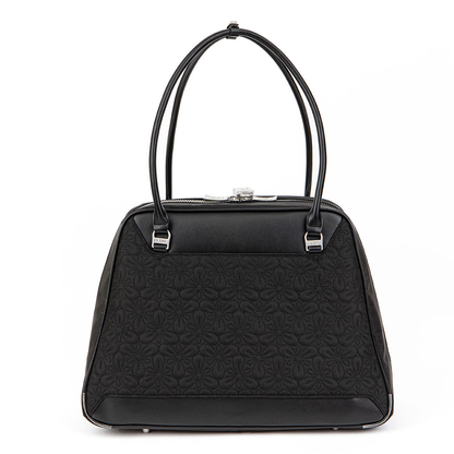 The quilted laptop pocket with signature Iris emblem can accommodate a 13-inch laptop.