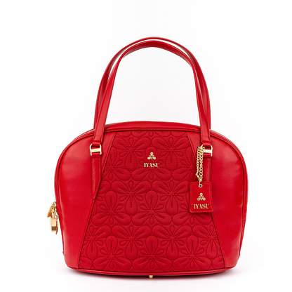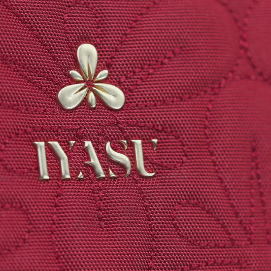 This bag is elegantly quilted with the IYASU emblem of the Iris, a flower which symbolises faith, hope and wisdom.