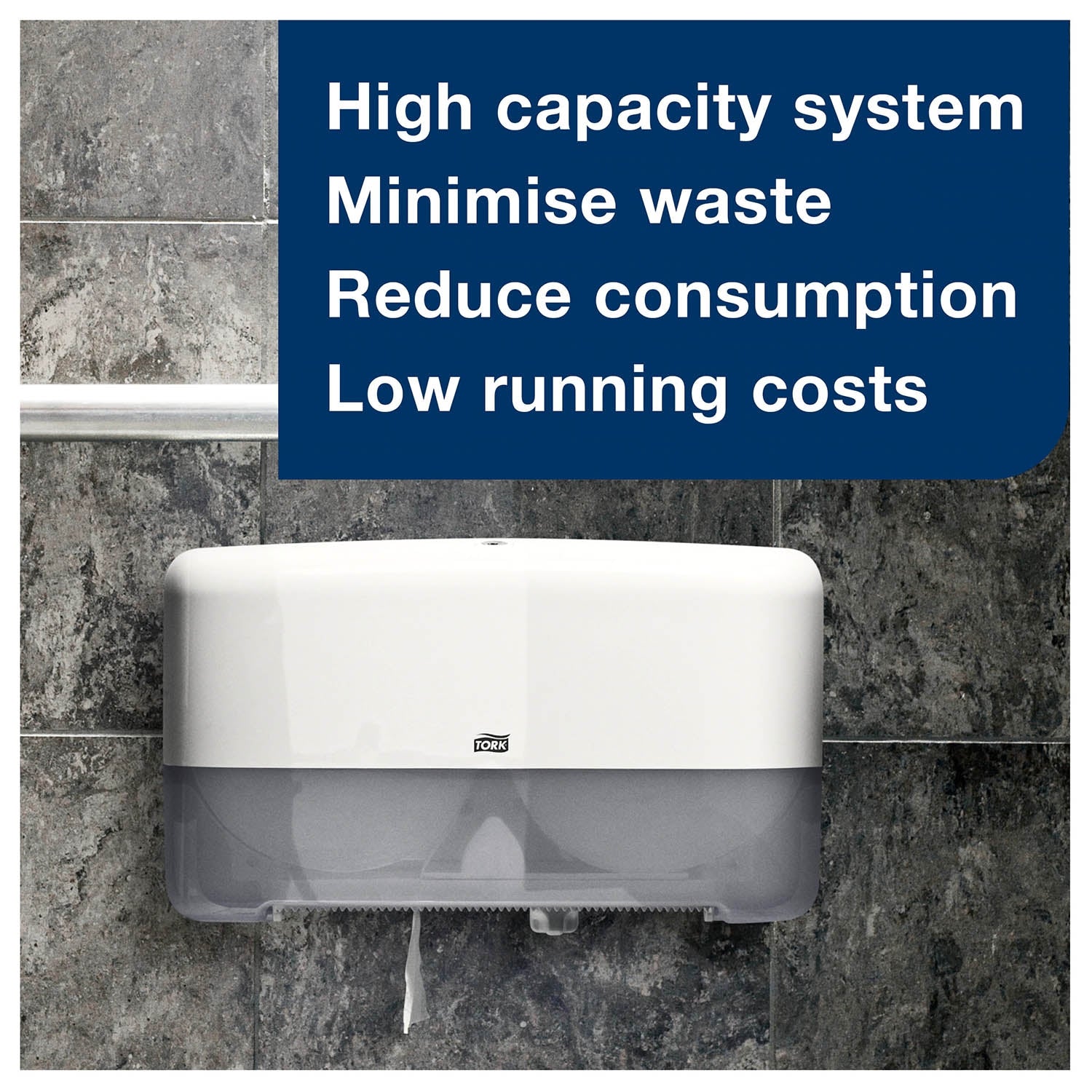 The Tork Mini Jumbo system stands for time efficiency and reduced cost, offering much more toilet paper than standard rolls. Tork Mini Jumbo Toilet Rolls Premium 2-ply offer a superior look and feel and performance, and are suitable for medium- to high-traffic locations.