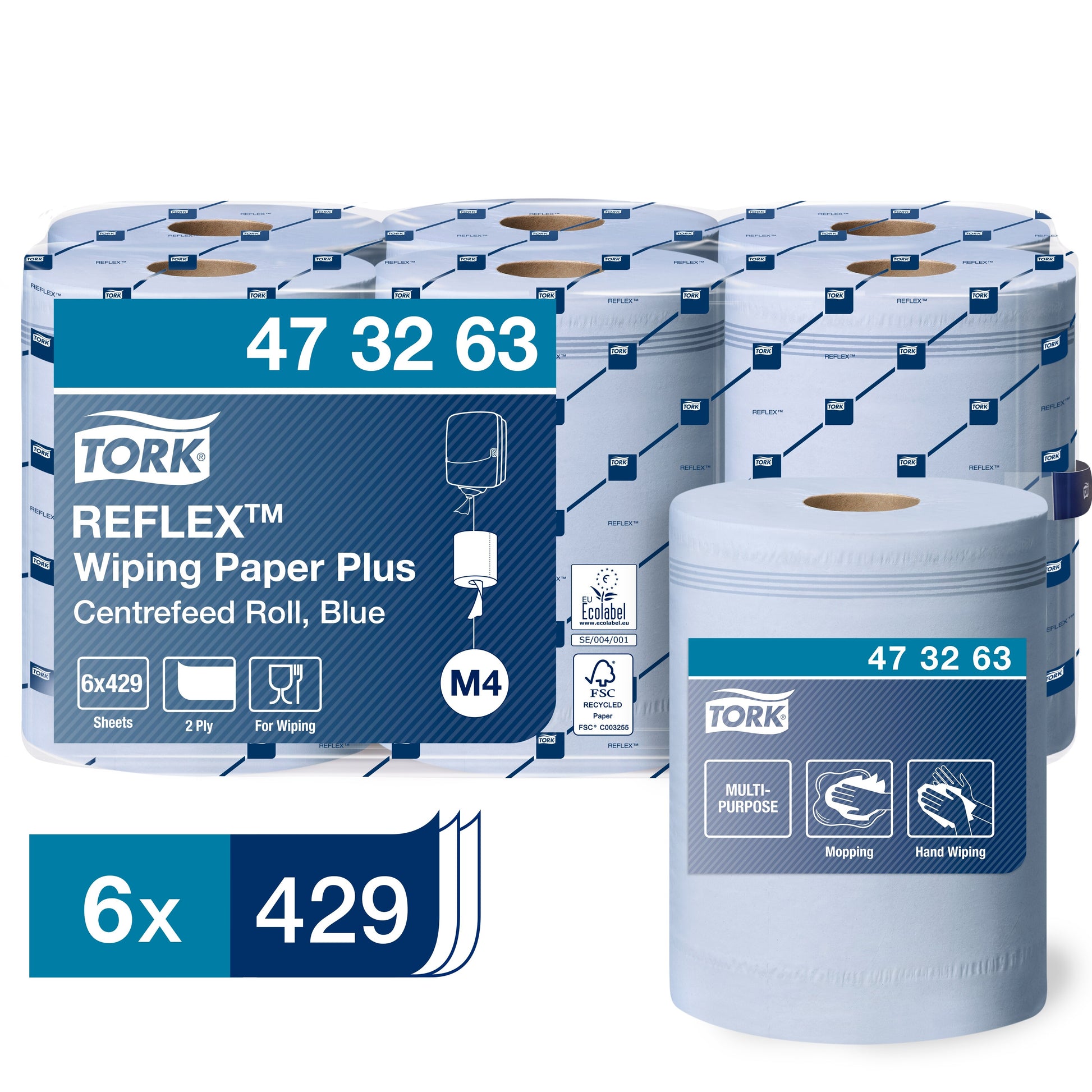 Versatile Tork Reflex™ Wiping Paper Plus is ideal for wiping tasks and hand wiping. Used in conjunction with Tork Reflex single-sheet centrefeed dispenser, Tork Reflex can reduce paper consumption by up to 37% vs standard centrefeed and minimises the risk of cross-contamination.