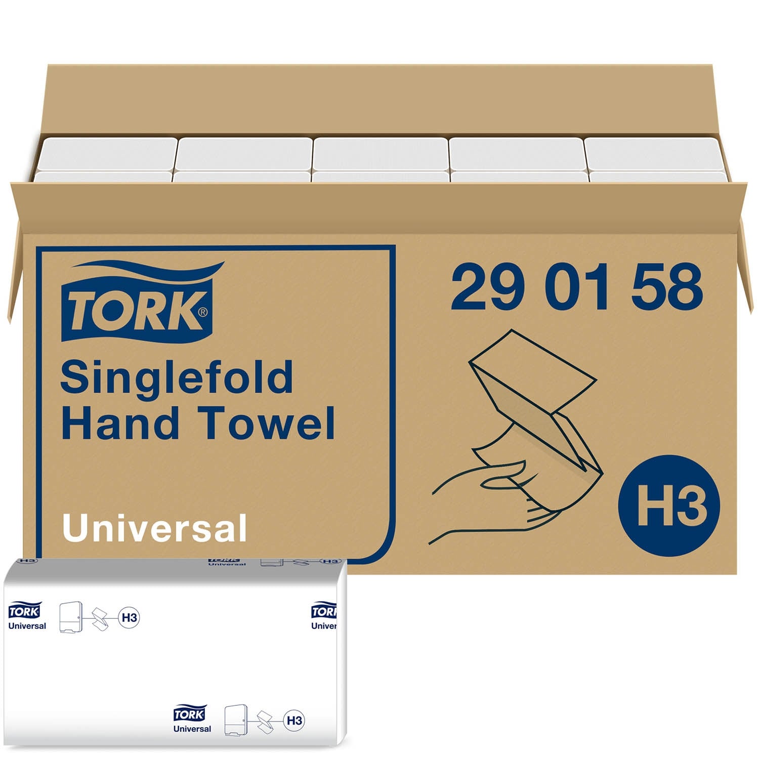 Satisfy basic hand drying needs with Universal Tork Singlefold Hand Towels that provide an economic value for money. These towels are suitable for the Tork Singlefold Hand Towel Dispenser for demanding environments. It reduces consumption and therefore waste with its reliable one-at-a-time dispensing.