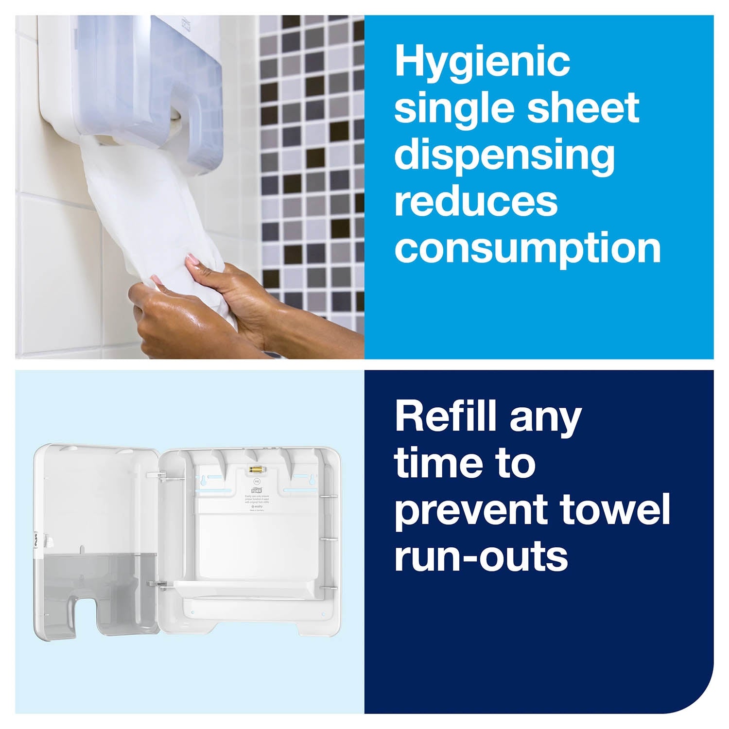 The Tork Xpress® Multifold Hand Towel Dispenser in Elevation Design is suitable for environments that demand both comfort and hygiene. This slim, attractive dispenser fits in low to medium traffic washrooms where space is limited and reduces consumption with one-at-a-time dispensing. Tork Elevation dispensers have a functional, modern design that makes a lasting impression on your guests.