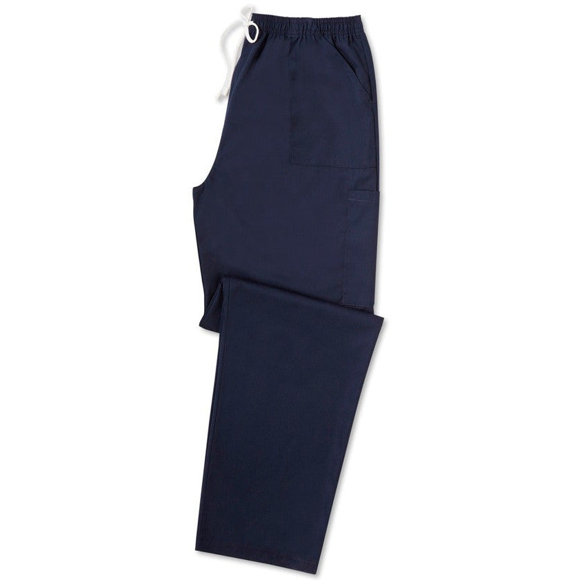 Smart scrub cargo trousers with fully elasticated waist with drawcord for secure comfort. Features two hip pockets and one side pocket.