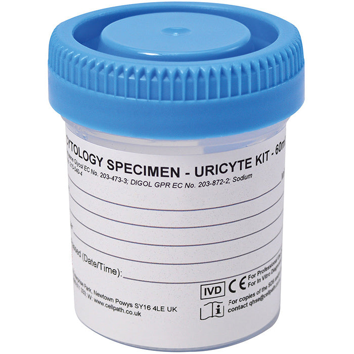This kit contains a 120ml polypropylene specimen container pre-dosed with 12ml of a well-proven transport fluid. This kit contains a specially designed funnel for both male and female use. The patient information leaflet is integral to the bottle.