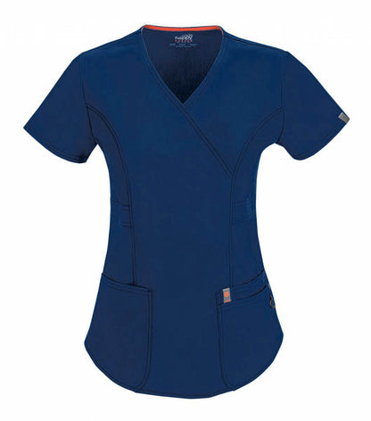 The 46601A is a mock wrap top featuring three patch pockets with a bungee I.D. loop, double princess seams, a flattering belt at the waist, signature mesh binding at the back neck, double-needle stitching and a shirttail hem. Fabric - 63% Polyester / 34% Cotton / 3% Spandex Poplin