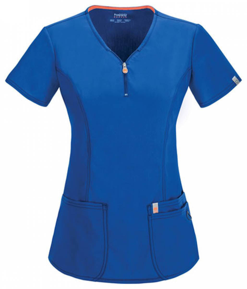 The 46600A is a v-neck scrub top with a zipper neckline. It also features front princess seams, multiple pockets, bungee I.D. loop and an internal mesh instrument loop.