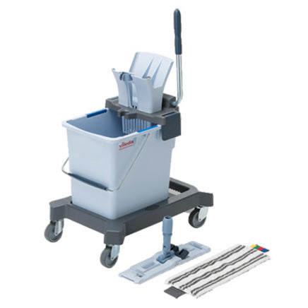 A simple-to-use press, integrated handle-holders and a highly manoeuvrable chassis make the UltraSpeed Pro Starter Kit a practical and essential cleaning solution.
