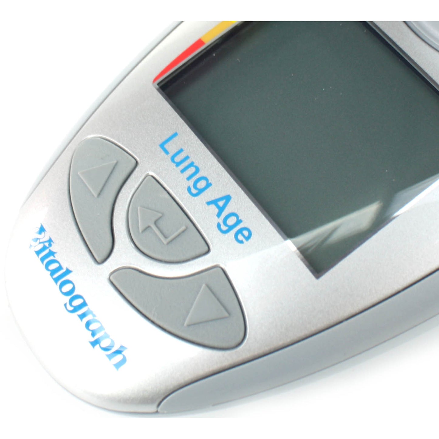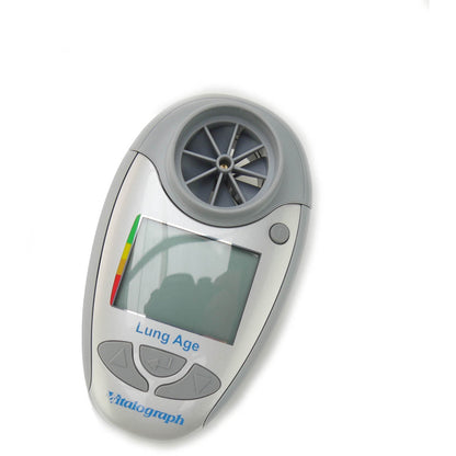 The Vitalograph lung age compares a subject's FEV1 with predicted normal values to calculate the subject's 'lung age'. A high lung age in relation to the subject's chronological age can illustrate the likely negative impact of continued smoking on lung function and encourage smoking cessation.