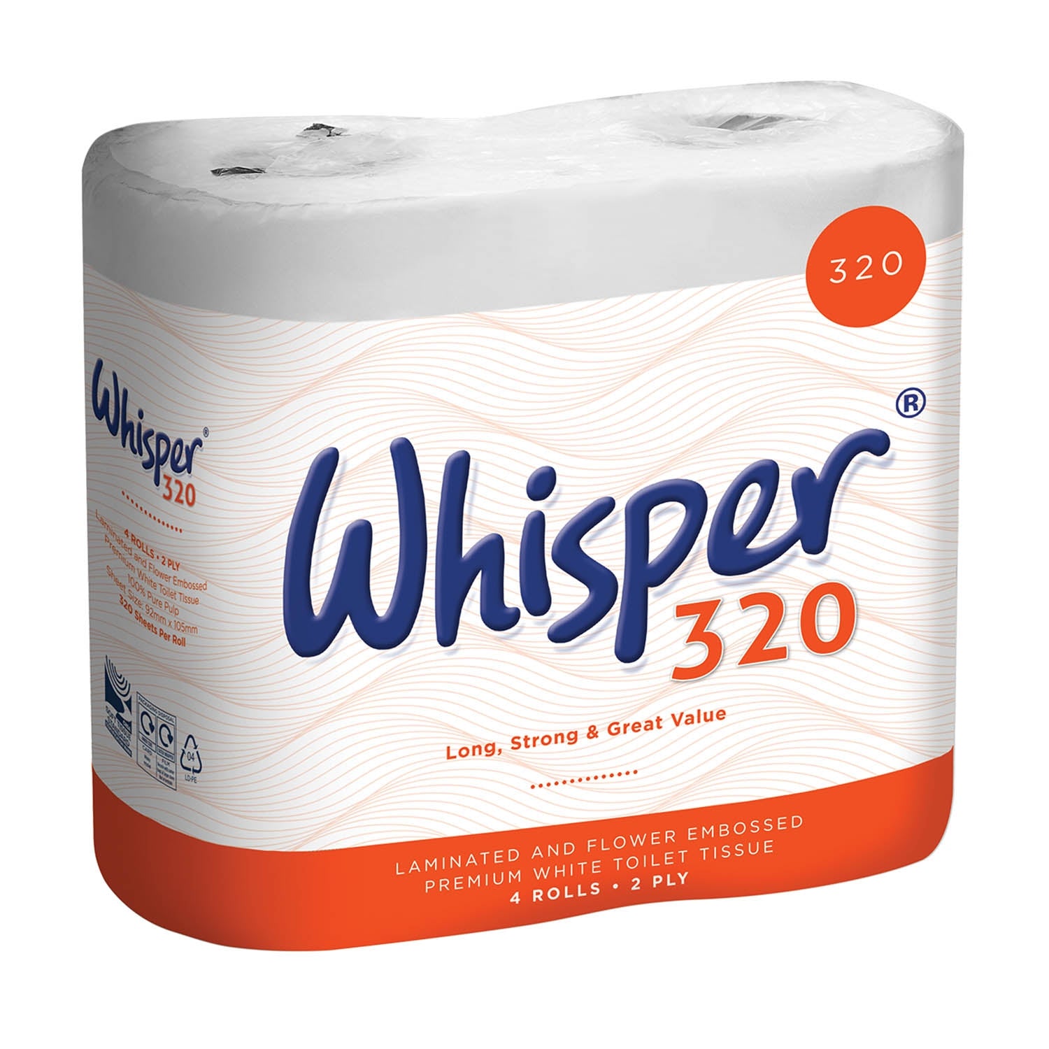 Whisper 320 2 Ply Toilet Roll x 36 Rolls