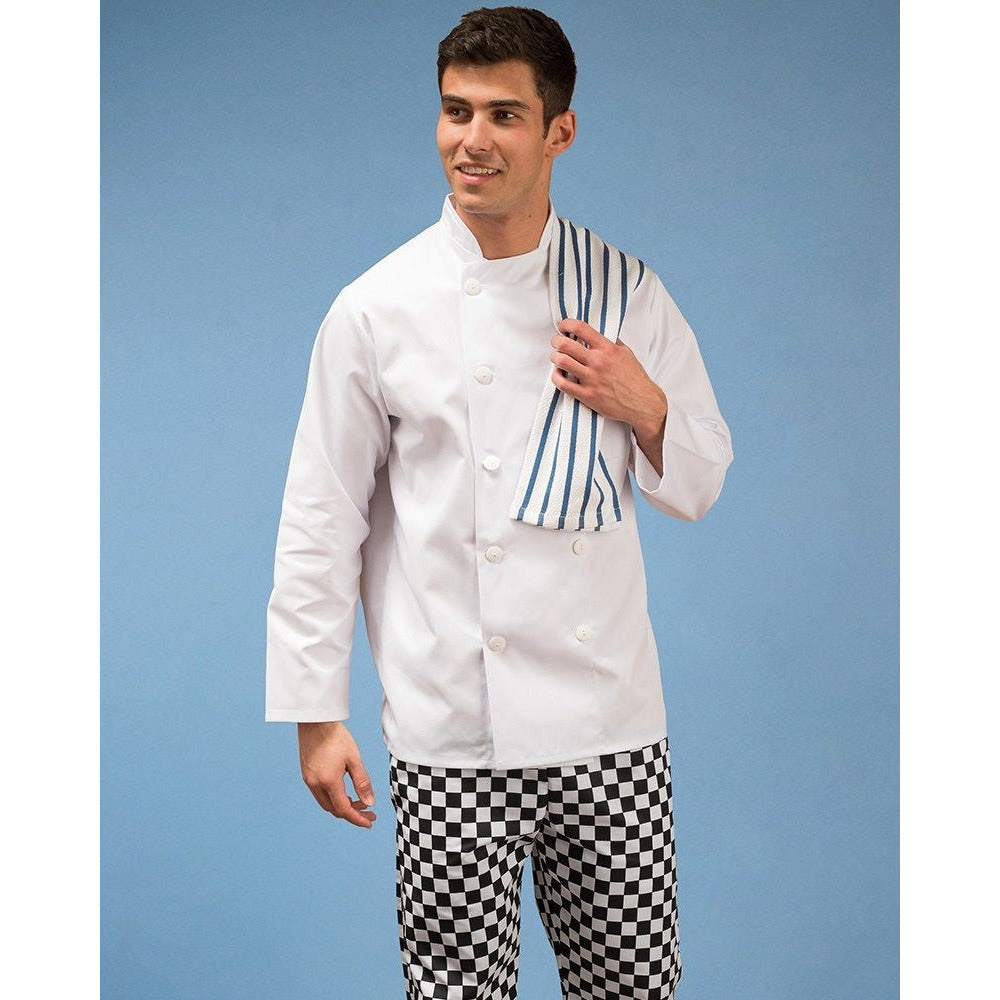 These chef whites are a hard wearing but comfortable polyester cotton blend fabric.
