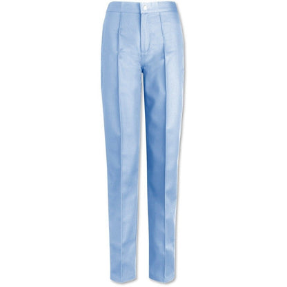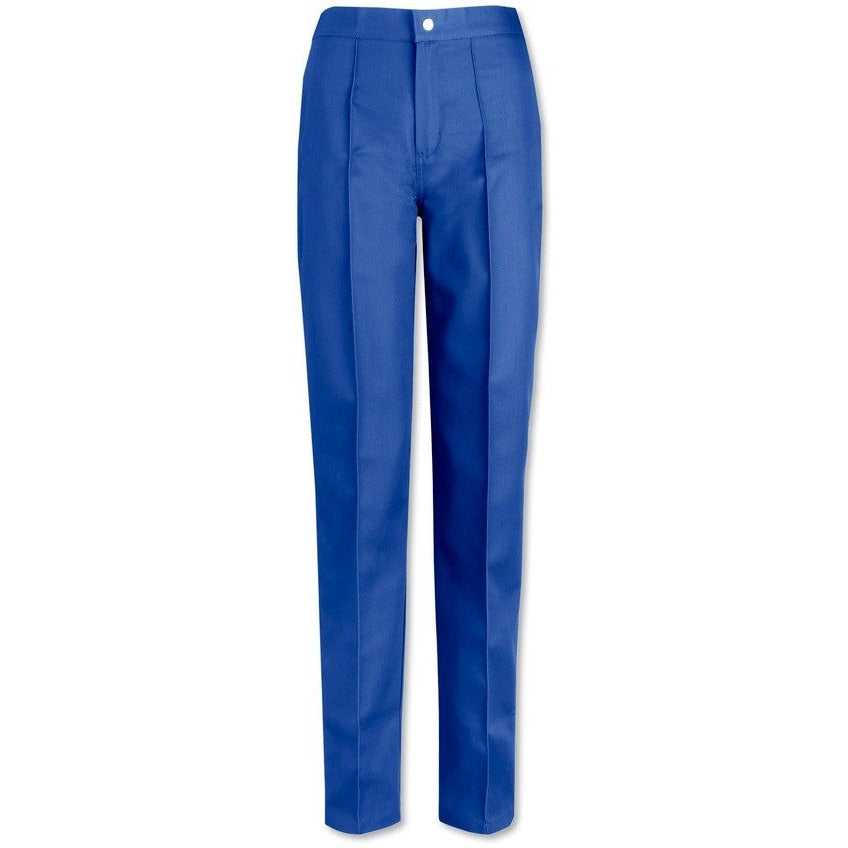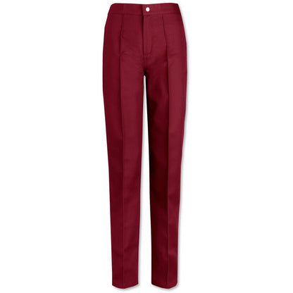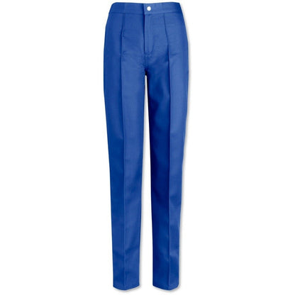 Women’s flat front trousers with sewn-in creases to give a professional look. Suitable for all working enviroments. Feature an elasticated waistband for extra comfort and zip fly with hook and bar. Available in a variety of colours.