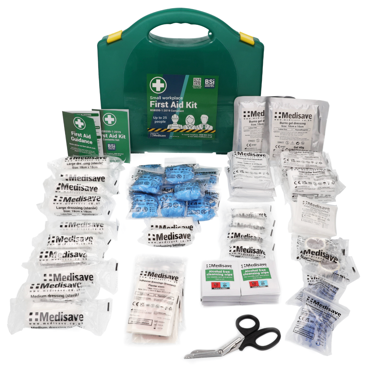 Ensure to fulfil your legal obligations to provide adequate first aid supplies – the Medisave BS8599-1:2019 first aid kits exceed the minimum first aid requirements set out by the HSE.