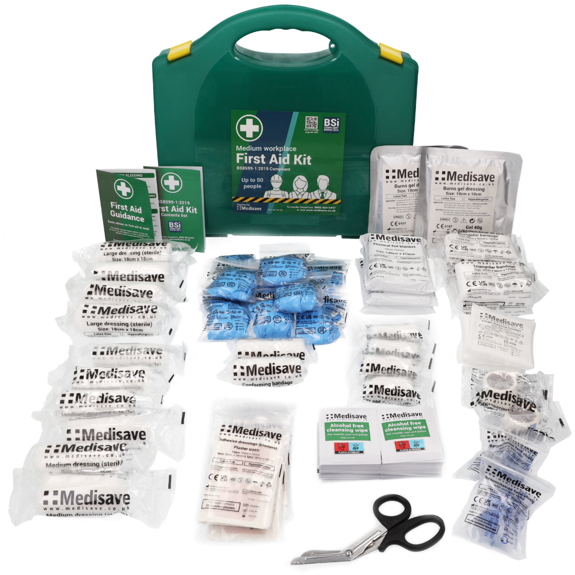 Ensure to fulfil your legal obligations to provide adequate first aid supplies – the Medisave BS8599-1:2019 first aid kits exceed the minimum first aid requirements set out by the HSE.