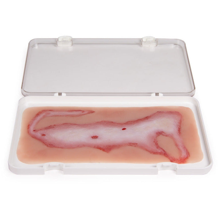 This moulage shows scalding. The moulage adheres to skin or a manikin.