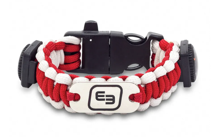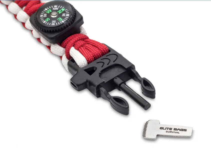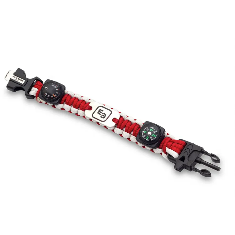 This bracelet is designed to contain in a practical, functional and light way, all the essential elements in case of survival. Made with parachute cord, it has endless emergency applications, since it is extremely useful for the construction of shelters, traps to hunt animals, tie objects, anchor tents, etc… In addition, extracting their seven internal threads, they can be used to sew and suture wounds. Among its additional components it has: compass, thermometer, toothed saw and flint to make fire, whistle, rescue rope that glows in the dark and a metal plate to emit flashes of light and facilitate the location of the user or rescuer.