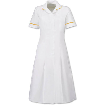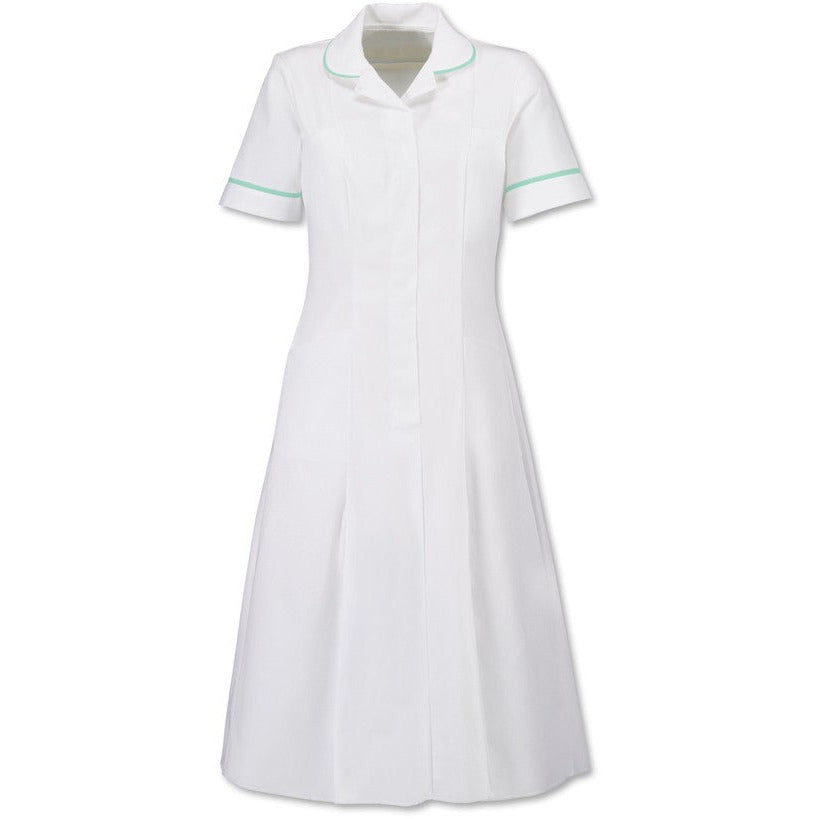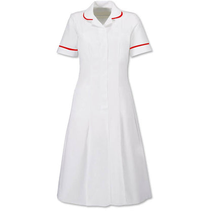 Simple crisp design with contrast collar and cuffs suitable for roles within the medical and healthcare professions. Features two hip and one chest pocket, double action back and front and back skirt pleats for ease of movement.
